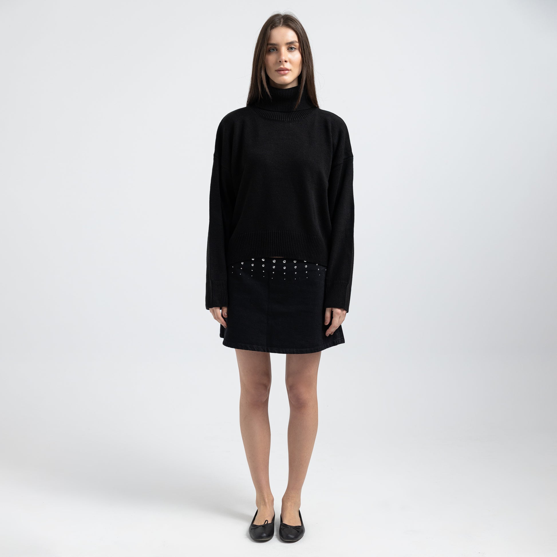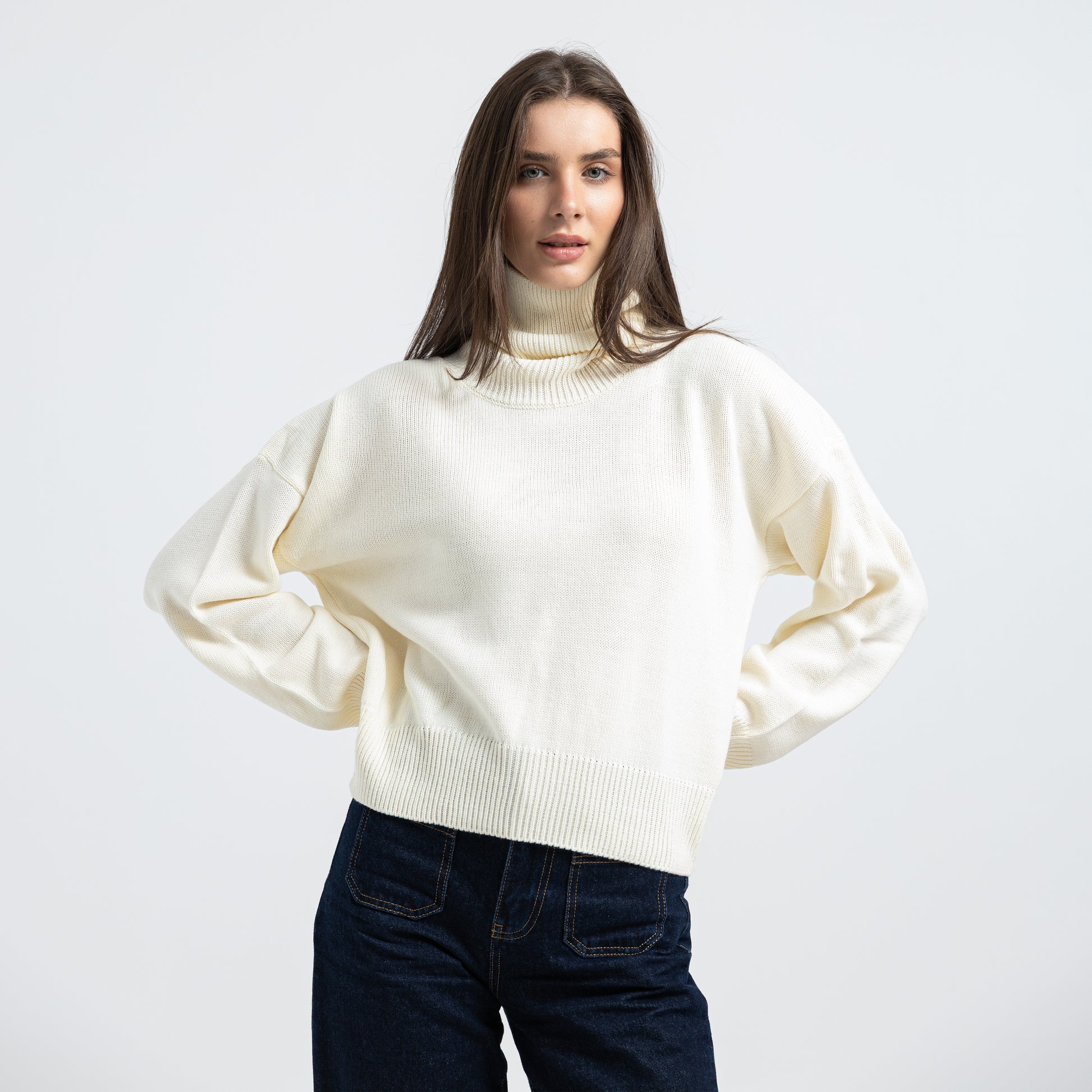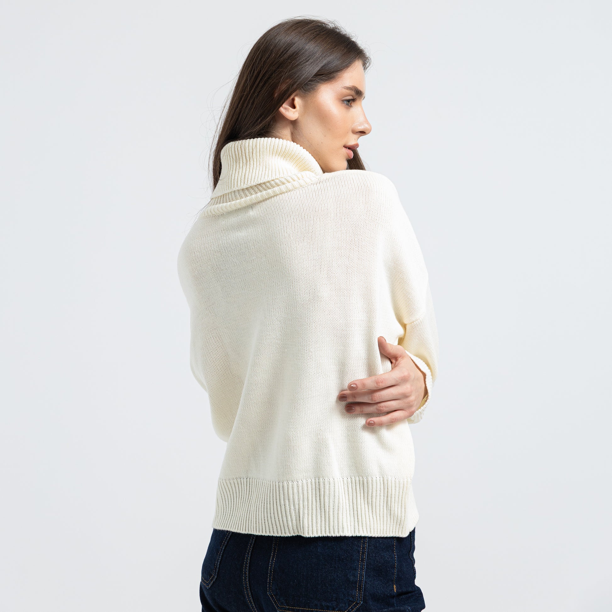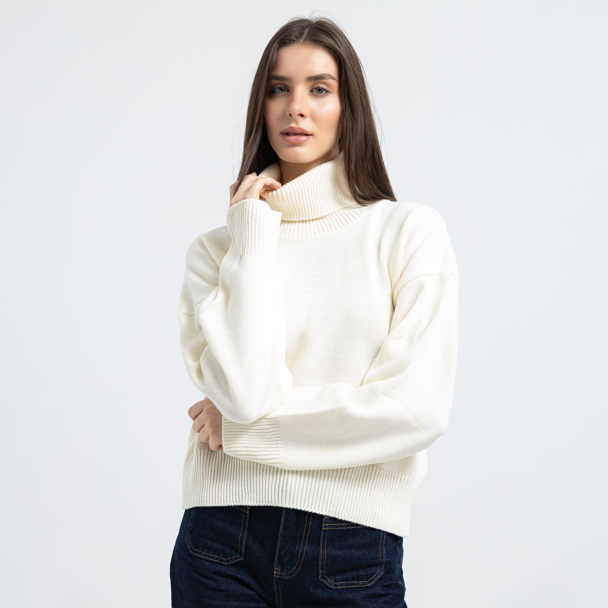 Stay warm and stylish with this high-neck turtleneck pullover. Perfect length for everyday wear and easy to style in multiple ways. A wardrobe essential.